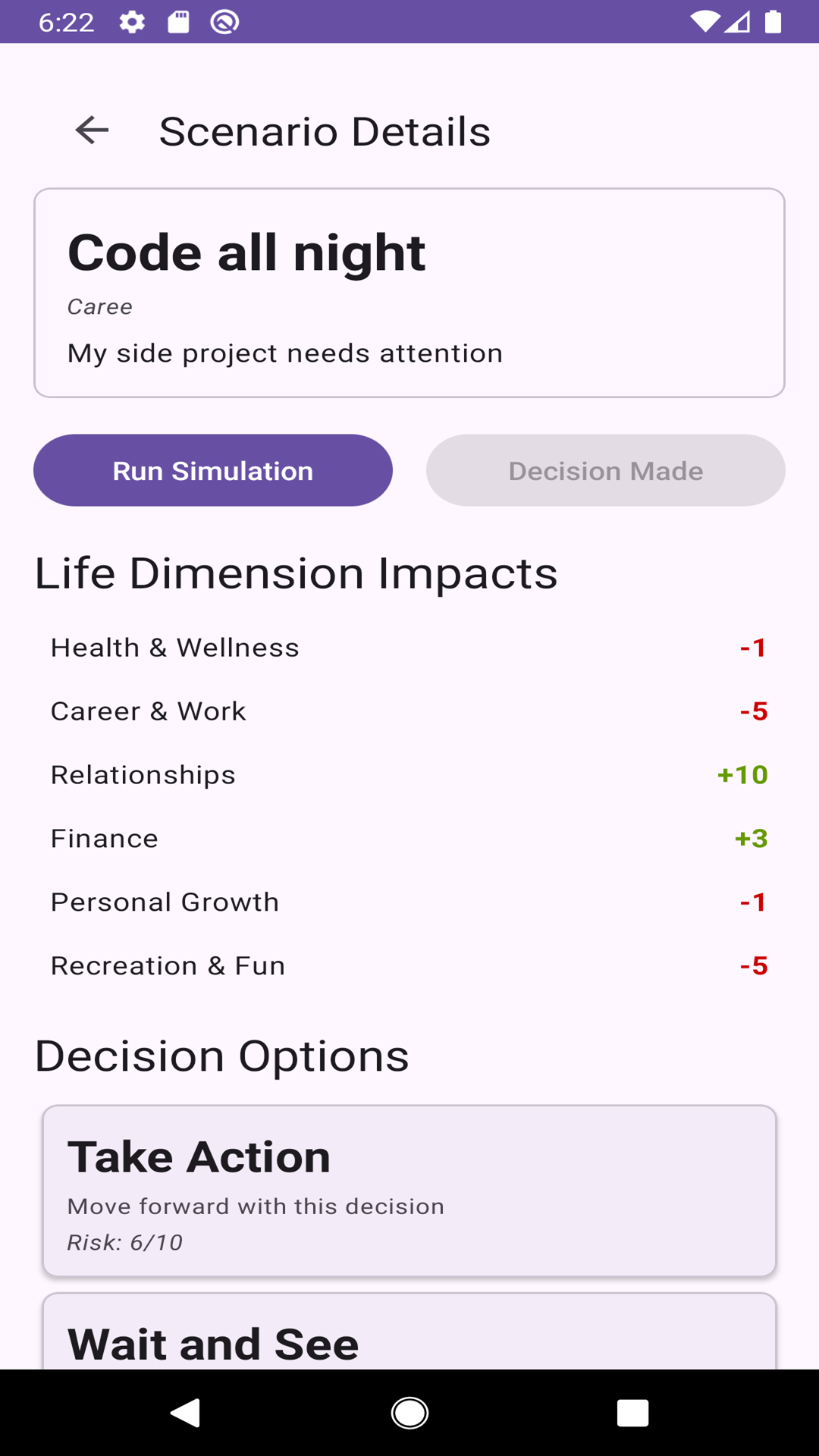 This app will show you a digital twin that would choose another option and what would happen to their health, career, finances, and other statistics.