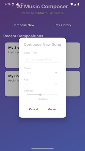 This app makes random sounds corresponding to Hip Hop, Jazz, Electronic, Rock, Pop and other music types.