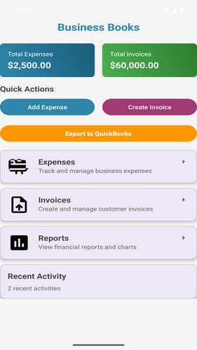 Business Books allows you to maintain, edit and export Invoices and Expenses for Taxes and Business Reporting
