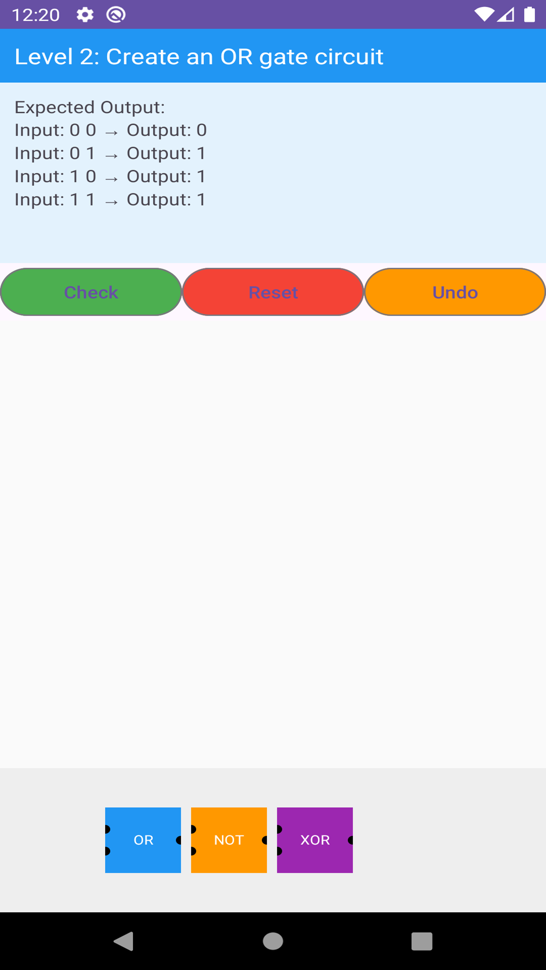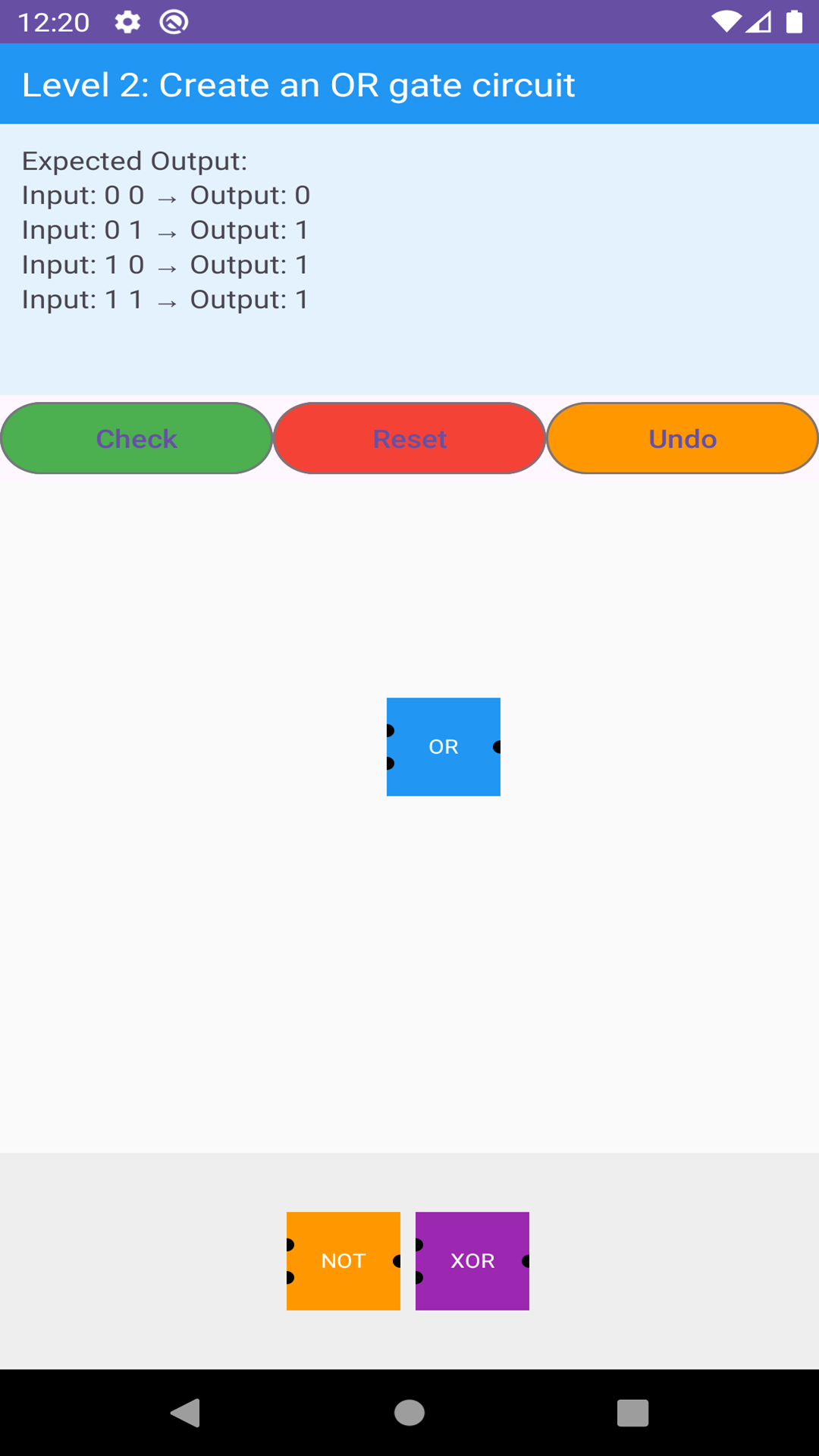 Use Nand, Or, And gates and others to complete various logical circuit puzzles