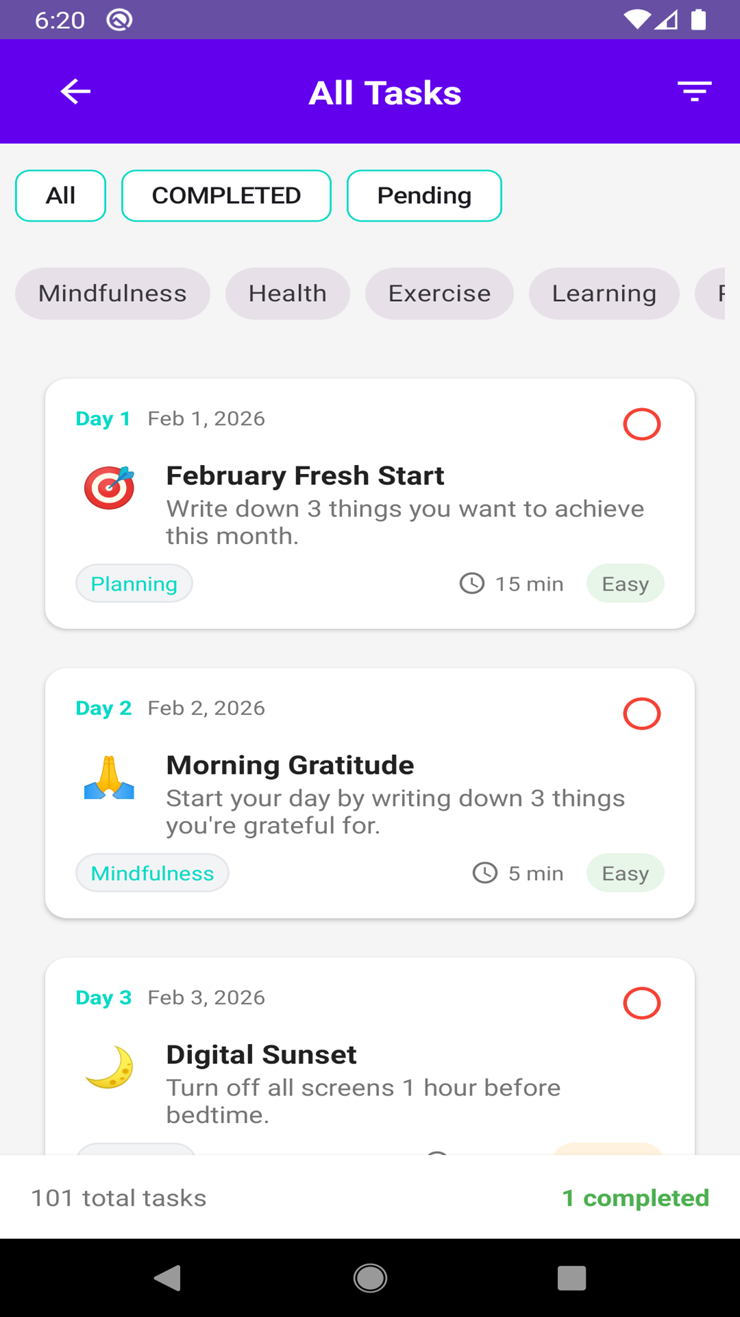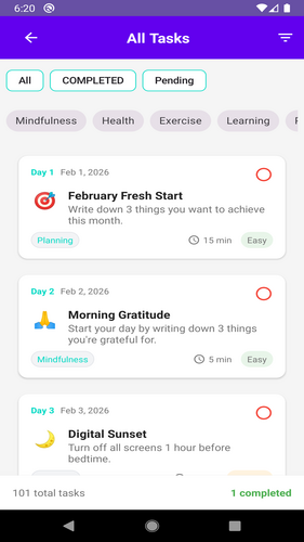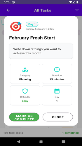 Gives you one hard, medium, or easy activity to do each day with a time limit for each task.