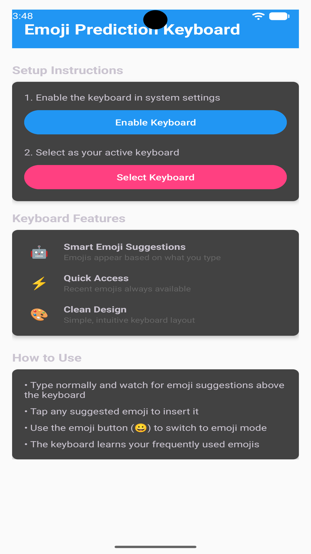 Automatically shows top 4 emojis by understanding the context of the typing.