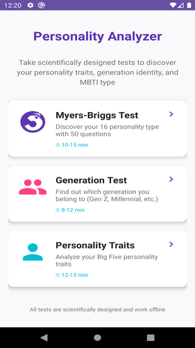 Test yourself with an age group predictor test, personality test and Myers Briggs test.