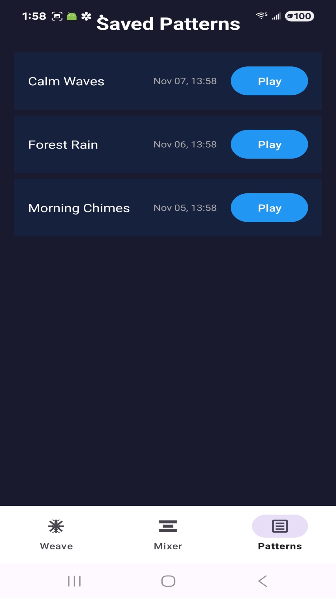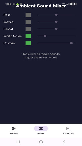 Sound Weave is an app where you create sounds based on Rain, White Noise, Waves, and other effects and then show the sounds as a visualization.